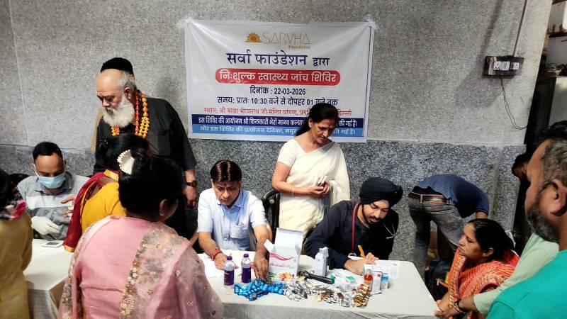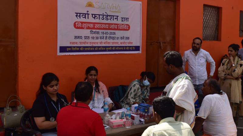 A health check-up camp was organized by the Sarvha Foundation, at the Hanuman Mandir premises in Connaught Place, New Delhi, on Wednesday, March 18, 2026. A large number of people participated in the camp and benefited from the services offered there.