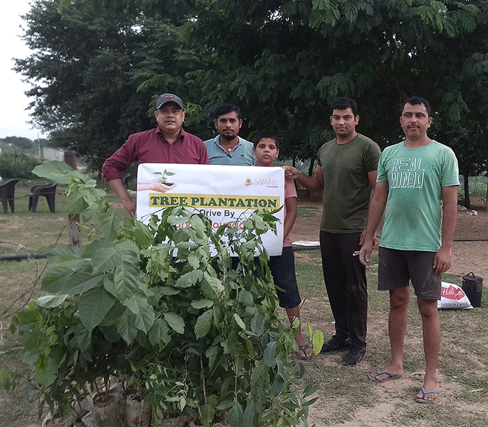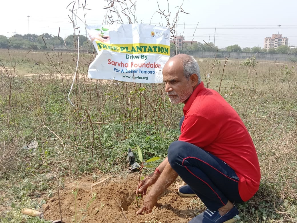 The Sarvha Foundation, as per its usual practice, actively advocates for environmental consciousness, facilitates tree plantation, and distributes saplings to the general public. In response to our Foundation's recent initiative aimed at motivating ordinary individuals to plant trees in their vicinity, villagers residing in a suburb of Delhi have enthusiastically planted trees in their fields.