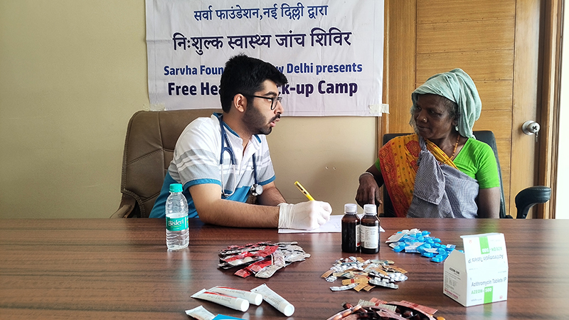 At Sector 150, Noida, Sarvha Foundation hosted a free health screening and medicines distribution camp for construction workers.